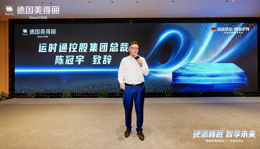 2025年11月8日,德国美得丽在江苏淮安萧湖国际大酒店隆重举行“硬派睡眠,智享未来”超级工厂新品发布会。运时通控股集团董事长陈燕木博士、运时通控股集团总裁陈冠宇、运时通控股集团总裁陈冠翰【视频号ID:床二代翰哥】、德国美得丽中国区总经理邓亮、德国美得丽副总经理王瑞东、尚普咨询集团创始合伙人兼CEO邓新宇、德国美得丽运营总监陈冲、德国美得丽新零售总监宋飞、德国美得丽产品经理杜茜茜以及来自全国各地的经销商伙伴齐聚一堂,共同见证美得丽在产品、技术与战略上的全面升级。