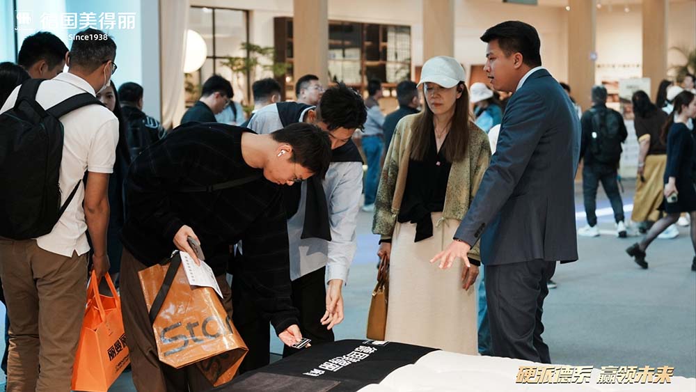 德国美得丽依托近百年德系精工积淀与硬核品质,以进口手工系列为核心,打造了兼具美学与体验感的沉浸式睡眠场景空间。美得丽凭借扎实的品牌力与产品力,吸引众多行业同仁与经销商驻足交流,现场人气持续高涨,为品牌在中国高端睡眠市场的深耕再添有力注脚。