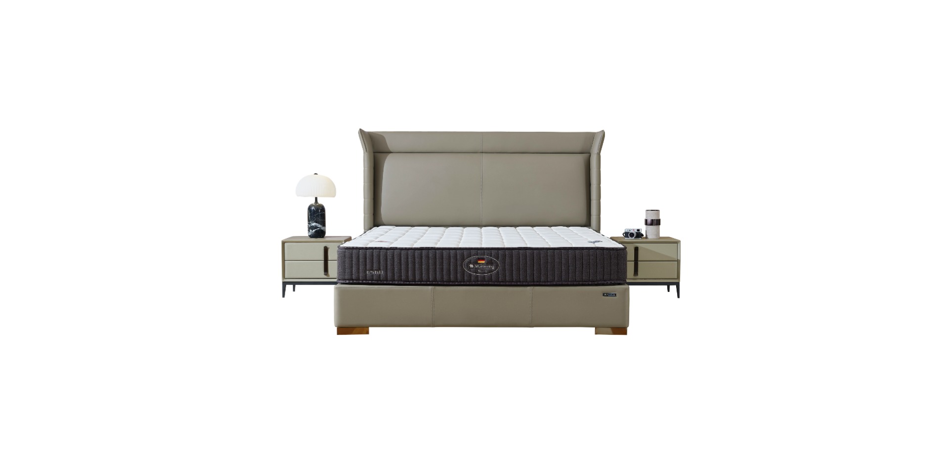 “翡诺”床架以欧陆贵族休憩美学为灵感,弧形靠背呈现新古典主义的优雅比例。利落的轮廓线条暗含包豪斯的现代精神,低矮的底座延伸出开阔视觉,仿佛岛屿轻落于卧室空间,致敬了凡尔赛宫家具的美学。整体造型如一件当代雕塑,在光影流转间勾勒出永恒与克制的平衡,让每一次休憩都成为身心靠岸的仪式。
