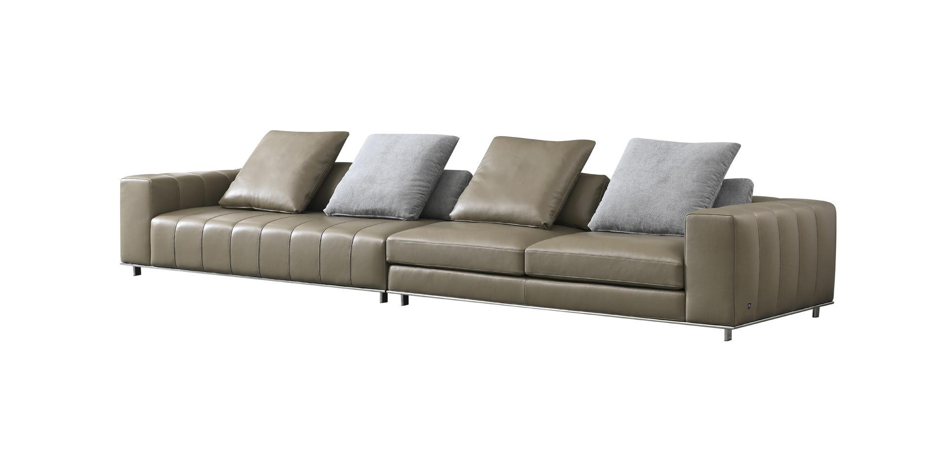 沙发选用进口头层牛皮,纹理细腻、质感高级,触感软绵却自带韧性。拼接处的工艺处理严丝合缝,既保留了模块化的自由形态,又保证了整体的精致度,每一处拼接都藏着对品质的极致追求。整体色调采用低饱和的高级灰,温柔又有力量,不张扬却极具辨识度,无论是简约风还是轻奢风空间,都能完美融入,成为彰显品味的点睛之笔。