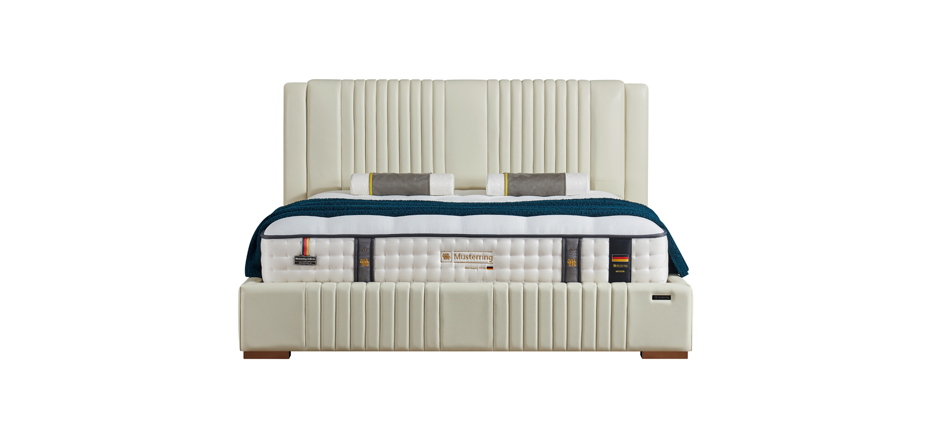 材质与工艺:甄选进口头层牛皮,触感柔韧细腻,哑光质感温润亲肤;床架结构采用稳固的实木框架,搭配细腻的软包工艺,既保证了耐用性,又让每一次触碰都倍感安心。