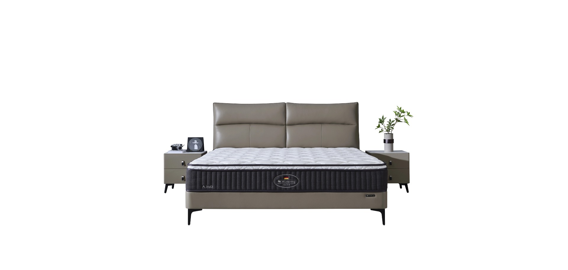 精致高脚设计:为床架增添了一份精致与时尚感,与牛皮的温润质感形成巧妙对比,提升整体设计的层次感。床脚线条利落,视觉轻盈简约 ,方便日常的床底清扫打理。